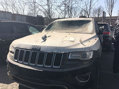 在天津滨海新区的中电物流停车场,记者看到一批受损的切诺基正以五折的价格对外出售。这些车的玻璃都已破碎,车体严重受损,车内后视镜也已脱落。卖车人告诉记者,这些车修好的卖40万,没修的卖33万,曾一天就卖出了四百多台。