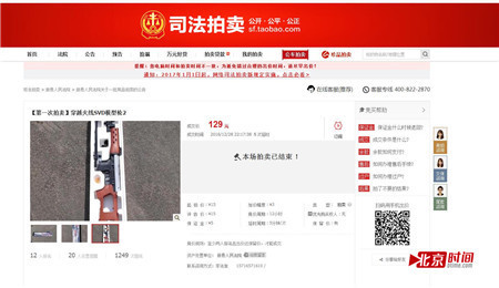 其中,“模型枪”的起拍价均为15元一把,成交价最高的达到129元。