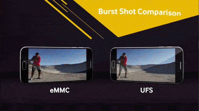 UFS和eMMC体验上的区别还在连续拍照上,连续拍照时UFS让照片写入更快,从下面的对比可以看出,不同接口标准的手机在连续拍照时,因为写入速度的限制eMMC拍摄时从按下快门到存储一张照片花费的时间更长,而UFS缩短了存储时间从而可以让我们可以在同一时间内抓拍到更多照片。