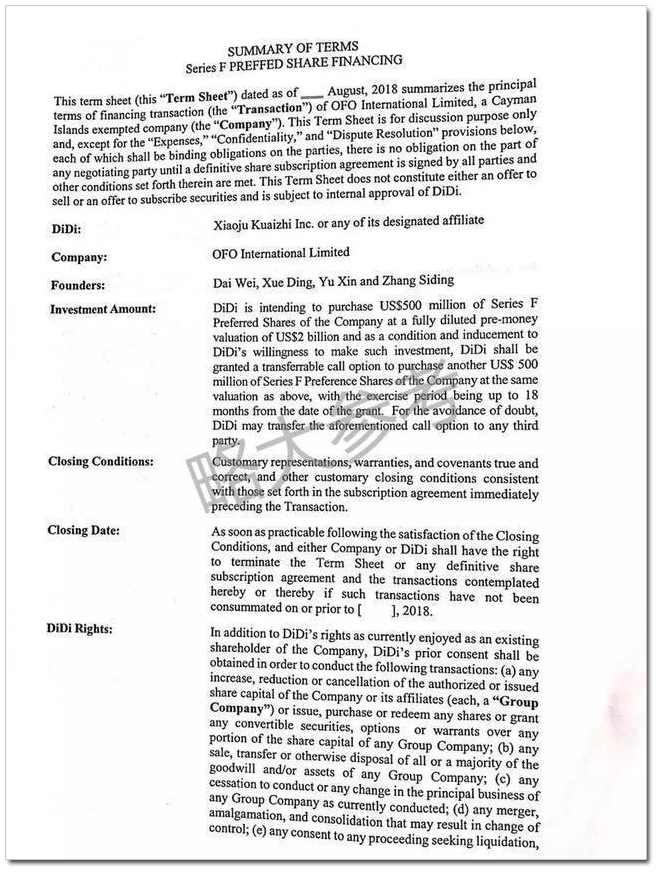 这一方式得到了所有投资人的同意,据《略大参考》报道,在滴滴撮合之下,孙正义和戴威就投资一事进行面谈,前者当场签下投资意向书。